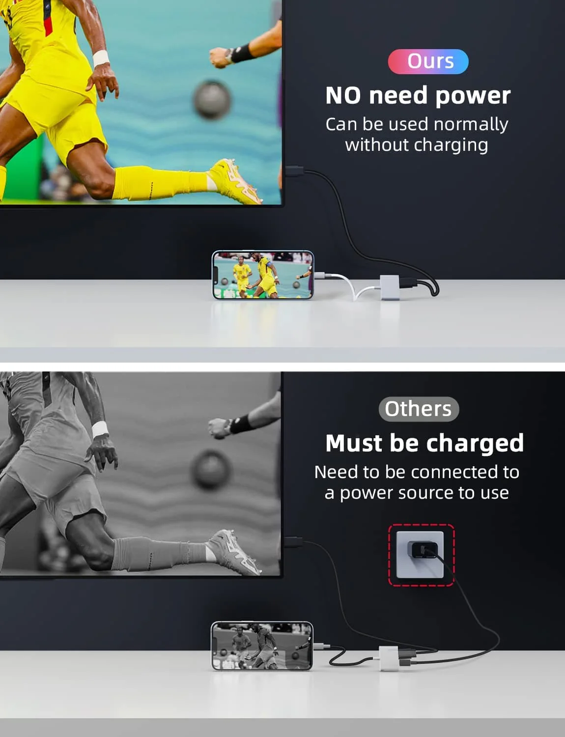 Do you often encounter difficulties in using equipment due to system incompatibility, especially for Apple users? Based on improving the experience of Apple users, UPERFECT designed this lightning to HDMI adapter, compatible for iPhone, iPad, iPod, etc. No need install any Driver/App & Personal Hot spot or WIFI, no need to adjust the Mirror of iPhone/iPad, just insert each interface to corresponding device, and then wait a few seconds to connect automatically.Â